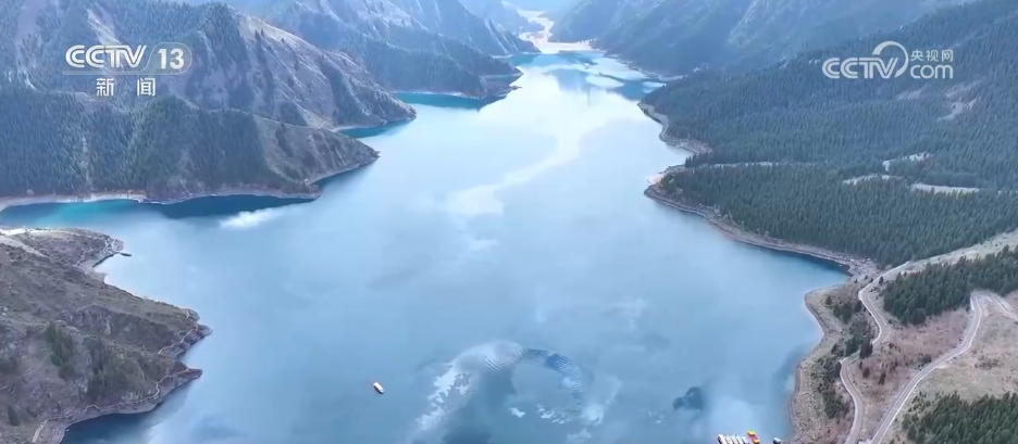 每年冬天,海拔1900多米的天山天池湖面封凍,封凍期達(dá)100多天。“五一”前夕,新疆阜康市天山天池景區(qū)冰雪消融,正式迎來“開湖”。