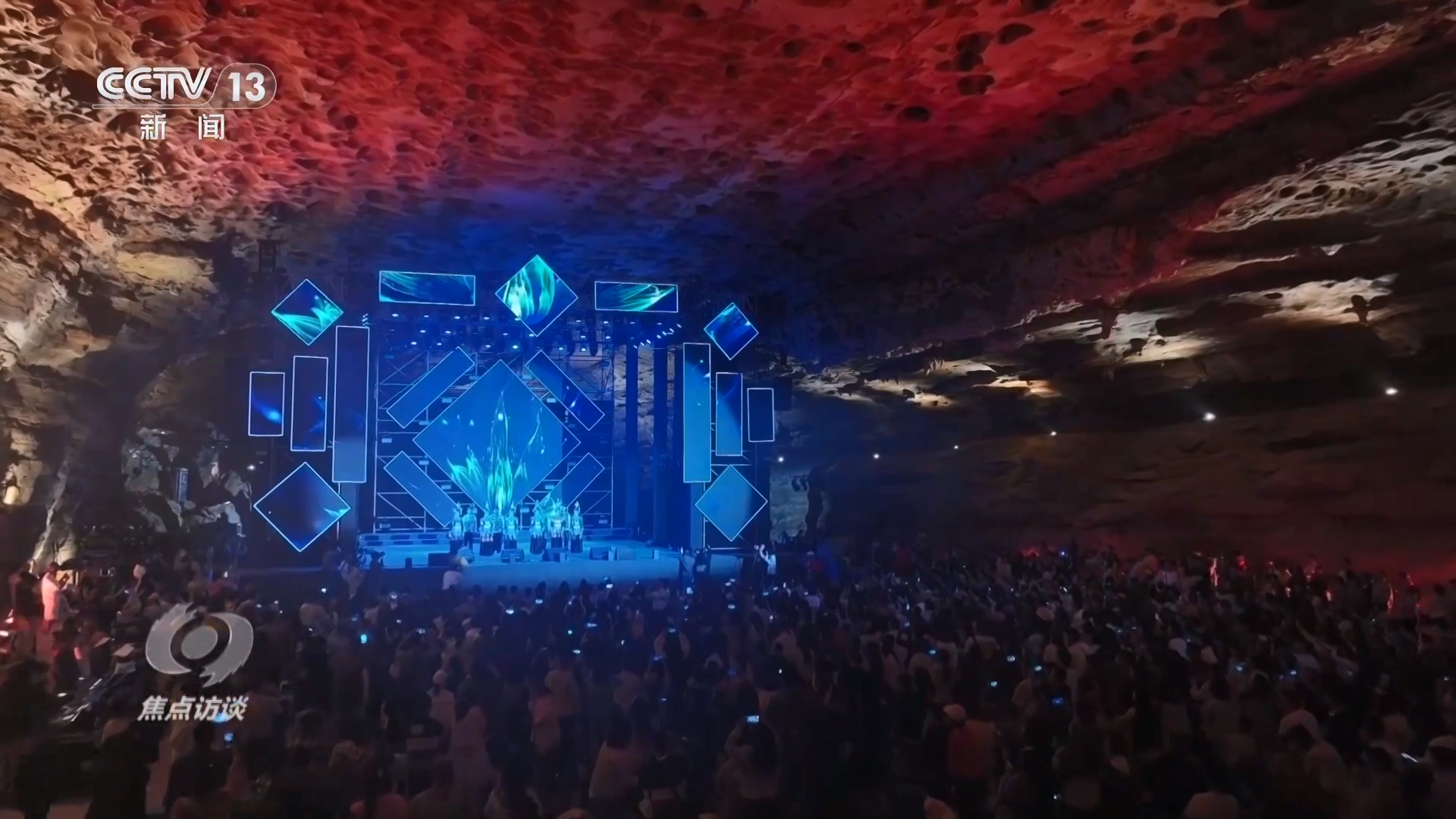貴州綏陽(yáng)縣溫泉鎮(zhèn),因溶洞喀斯特地貌資源豐富,假期里當(dāng)?shù)貙⒁魳?lè)會(huì)“搬進(jìn)”了溶洞,專業(yè)音響系統(tǒng)被布置在鐘乳石群間,使音樂(lè)既能保留原聲質(zhì)感,又能疊加洞穴獨(dú)有的空靈回響。洞中主舞臺(tái)還引入全息投影技術(shù),將銀河系動(dòng)態(tài)光影投射在億萬(wàn)年形成的洞頂巖壁上,營(yíng)造“地心音樂(lè)會(huì)”的奇幻氛圍。