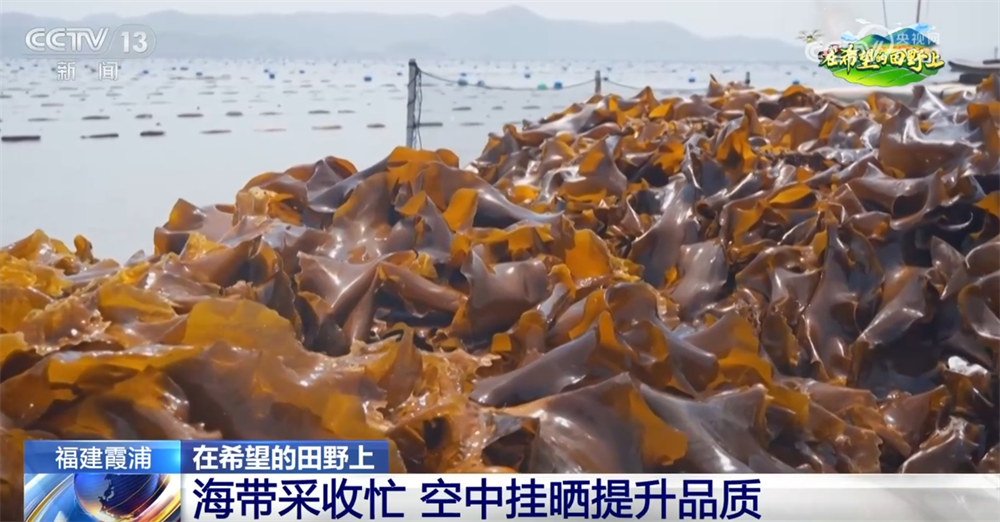 福建寧德市霞浦縣被譽(yù)為“中國(guó)海帶之鄉(xiāng)”,是我國(guó)海帶的主產(chǎn)區(qū)之一。這幾天,當(dāng)?shù)氐?5萬(wàn)畝海帶迎來(lái)豐收,養(yǎng)殖戶們忙著將成品海帶收獲上岸,再運(yùn)送到晾曬場(chǎng)晾曬,形成了獨(dú)特的“空中曬場(chǎng)”。
