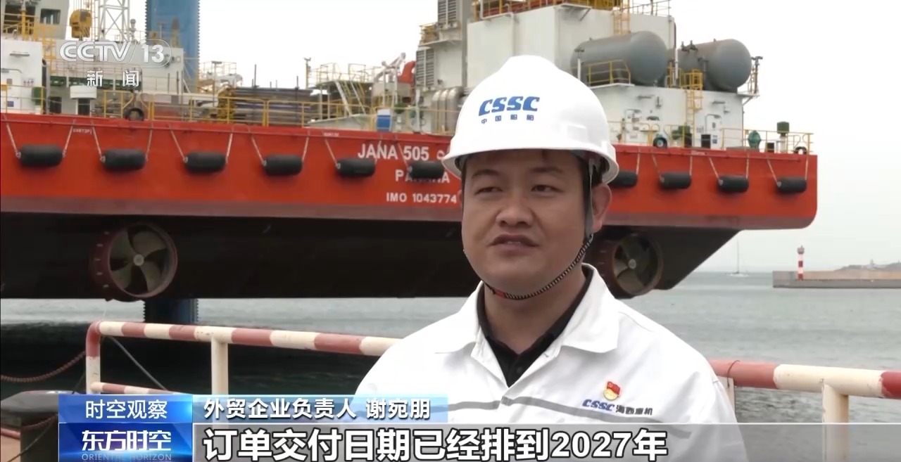 外貿(mào)企業(yè)負責人 謝宛朋:目前,在建外貿(mào)平臺及港機設(shè)備40余臺,訂單交付日期已經(jīng)排到2027年。
