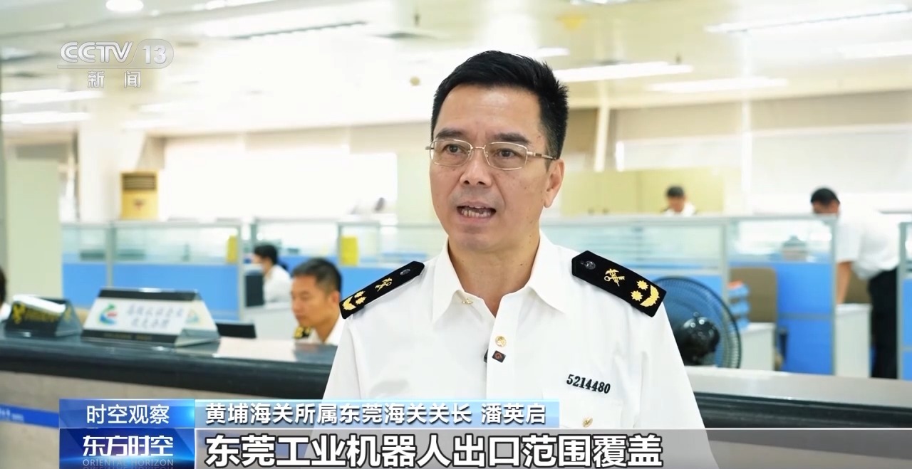 黃埔海關(guān)所屬東莞海關(guān)關(guān)長 潘英啟:東莞工業(yè)機器人出口范圍覆蓋亞洲、歐洲、美洲等多個地區(qū),出口產(chǎn)品類型豐富多樣,涵蓋焊接機器人、搬運機器人、裝配機器人等多種工業(yè)應(yīng)用場景的機器人。
