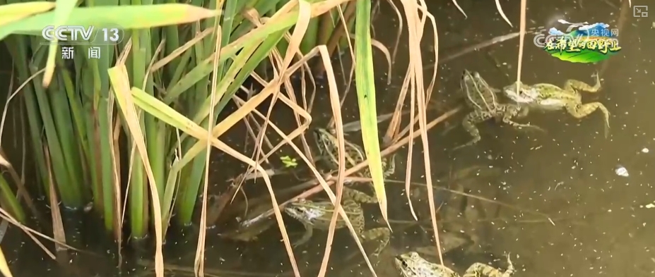 小鴨子們喜歡吃稻谷,它們會(huì)不會(huì)把稻田里的谷子也吃掉?為了防止這樣的情況發(fā)生,這里采用的模式是“鴨蛙稻”模式,5月放鴨、7月放蛙,在水稻進(jìn)入抽穗期,也就是有稻谷的時(shí)候,15萬只小青蛙就會(huì)來接力管理這片農(nóng)田,由它們來捕食害蟲,替代殺蟲劑。