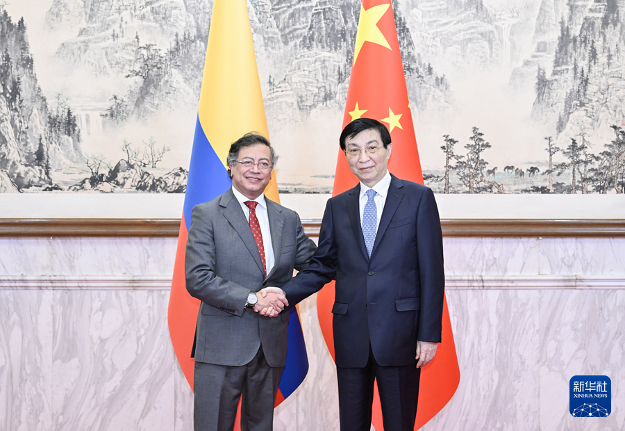 中共中央政治局常委、全國政協(xié)主席王滬寧14日在京會見來華出席中拉論壇第四屆部長級會議的哥倫比亞總統(tǒng)佩特羅。