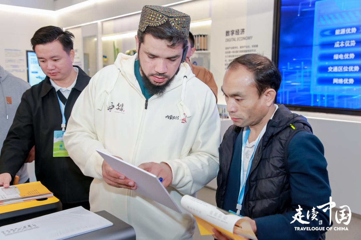 《喀布爾時報》總編尼克馬爾(中)在烏蘭察布(京蒙)人才科創(chuàng)園展廳仔細了解相關介紹
