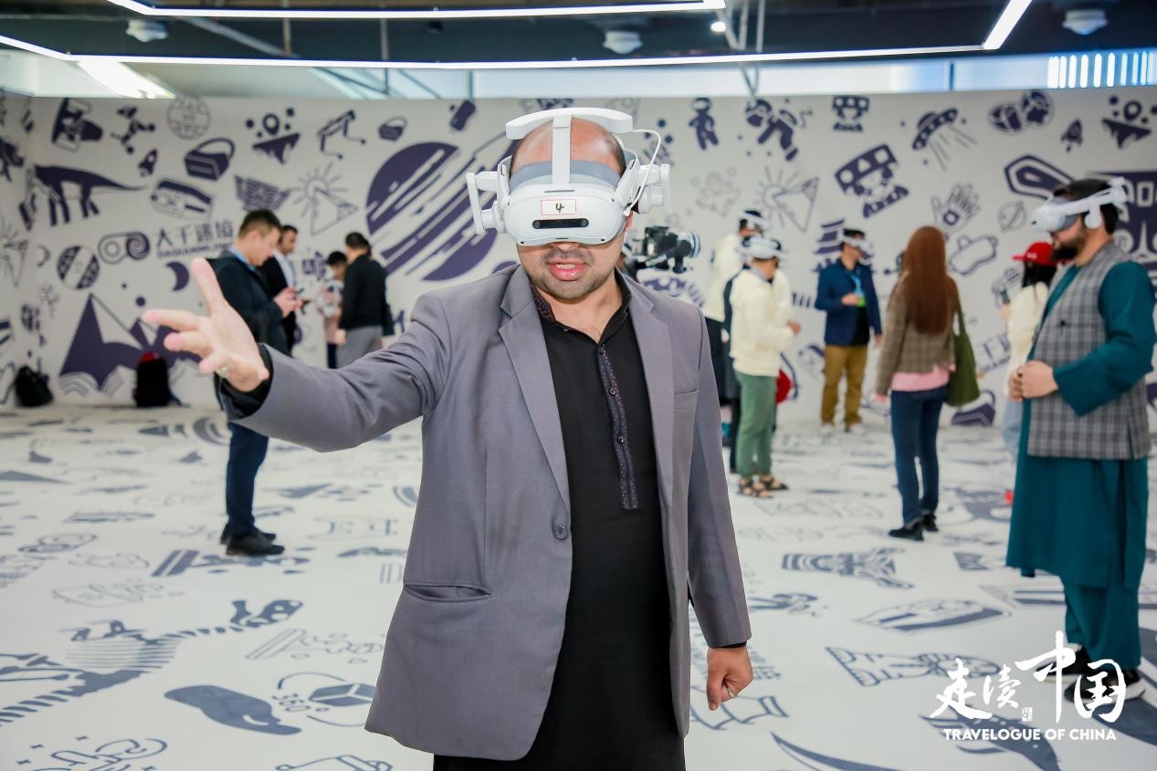 巴基斯坦記者賽義德·奧恩·穆罕默德佩戴VR設備體驗互動場景