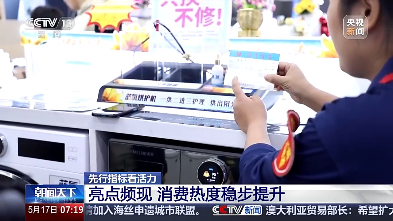 國家信息中心今天(17日)發(fā)布了一系列先行指標,記者從中發(fā)現,4月份以來,在一系列宏觀政策協(xié)同發(fā)力下,消費、投資、工業(yè)生產等多領域保持向好態(tài)勢。