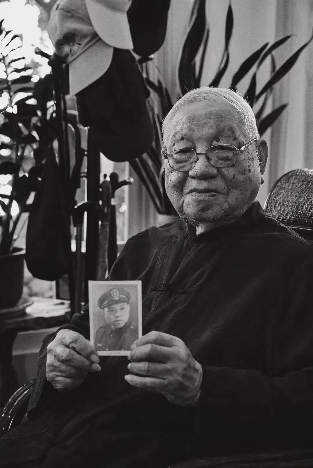 2019年10月11日,廣東五華籍臺灣老兵曾奇才在臺灣苗栗家中為劇組展示老照片。片方供圖