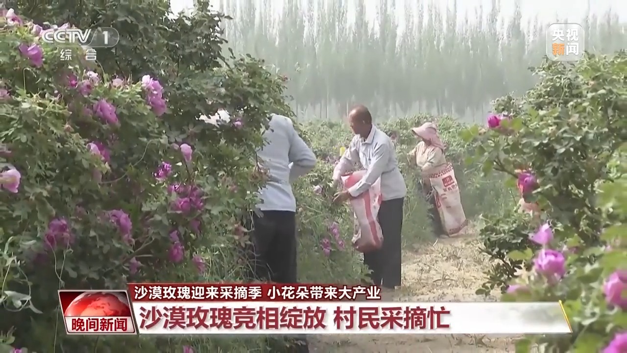 在這里,玫瑰不僅是防風(fēng)固沙的“生態(tài)衛(wèi)士”,也是助農(nóng)增收的“致富花”。眼下,7萬余畝玫瑰花迎來采摘季。
