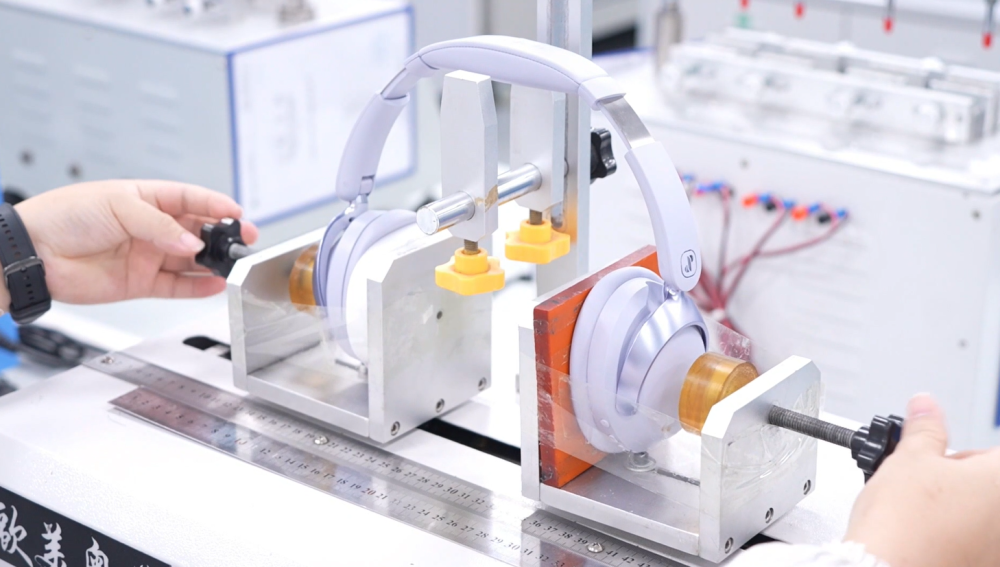 廣東眷蜀科技有限公司車間內(nèi),員工對耳機(jī)產(chǎn)品進(jìn)行技術(shù)檢測。受訪者供圖