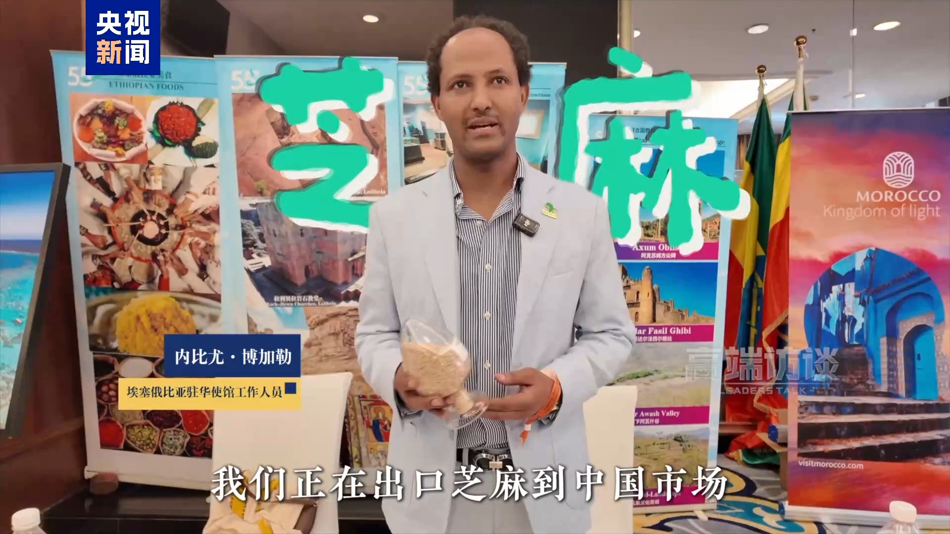 埃塞俄比亞駐華使館工作人員 內(nèi)比尤·博加勒:這是芝麻,我們正在出口芝麻到中國市場(chǎng)。這是埃塞俄比亞的優(yōu)質(zhì)芝麻產(chǎn)品,它們以自然有機(jī)聞名。我們受惠于中國的貿(mào)易政策,借助中非合作的平臺(tái)將這些芝麻出口到中國市場(chǎng)。