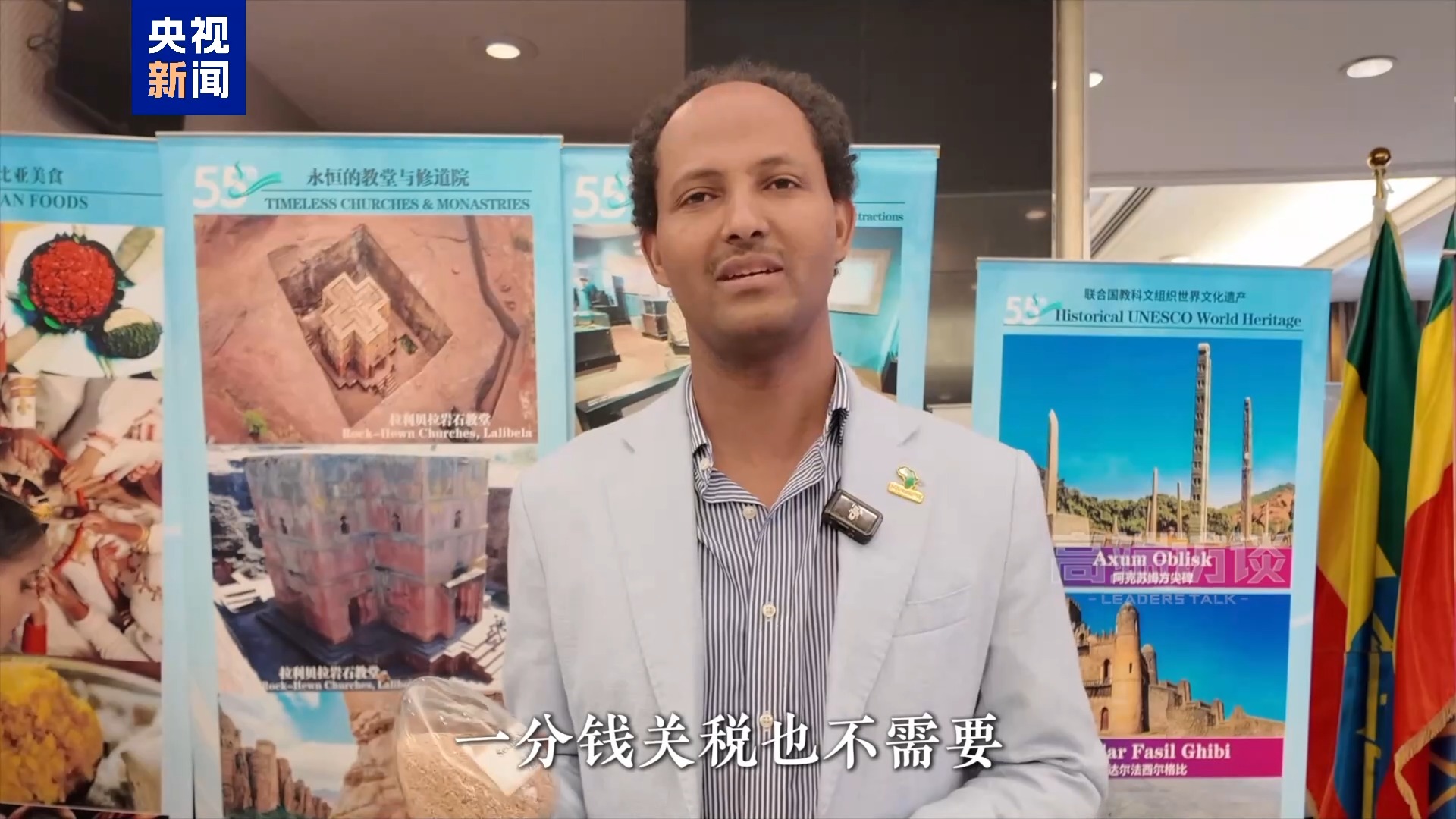 埃塞俄比亞駐華使館工作人員 內(nèi)比尤·博加勒:我們出口這些到中國市場(chǎng)不需要支付關(guān)稅,一分錢關(guān)稅也不需要。