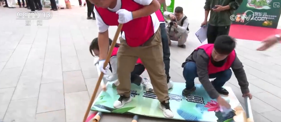 活動(dòng)現(xiàn)場(chǎng),最引人注目的當(dāng)屬充氣龍舟競(jìng)速賽。大家以腿為槳,以手為舵,考驗(yàn)團(tuán)隊(duì)的配合與默契。在劃旱船環(huán)節(jié),四人一組,兩人站著撐槳,在其余兩人的配合下將平板向前移動(dòng)。