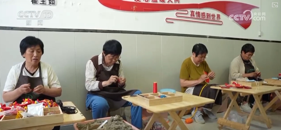 走進(jìn)生產(chǎn)工作室,工人們正專(zhuān)注地縫制香囊。