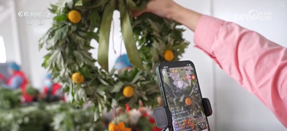 在江蘇新沂的一家艾草企業(yè)直播間里,主播正熱情地介紹新款艾草文創(chuàng)產(chǎn)品,線上訂單源源不斷。一旁的生產(chǎn)線上,工人們也正在熟練地制作艾草花環(huán)。端午臨近,這款艾草花環(huán)日均銷(xiāo)量突破萬(wàn)件。