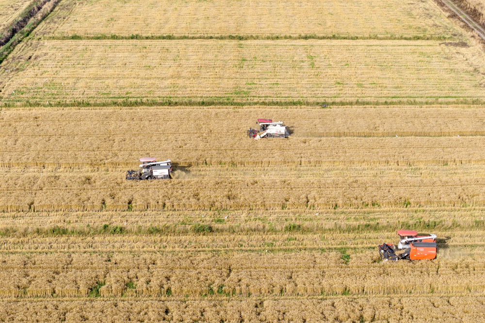全國“三夏”大規(guī)模小麥機收全面展開。記者在河南、山東、浙江、江蘇等地看到,收割機開足馬力馳騁在麥田中,一排排小麥被整齊地切割、脫?!瓘V袤農(nóng)田一片繁忙景象。