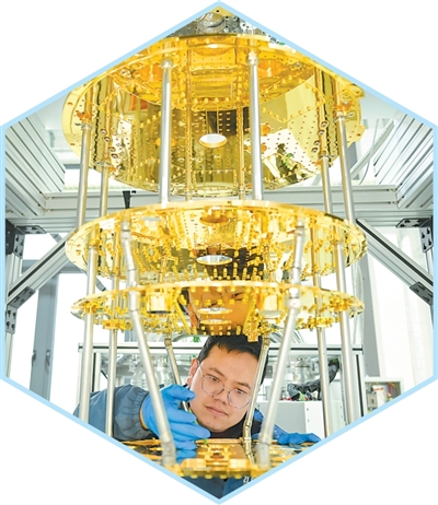 安徽合肥一家科技公司的技術(shù)人員在安裝稀釋制冷機(jī)的換熱組件。劉玉才攝(影像中國(guó))