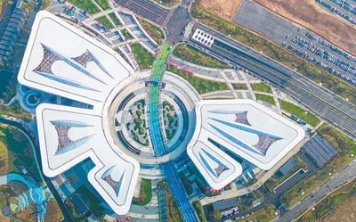 浙江金華金漪湖科創(chuàng)智造產(chǎn)業(yè)園云蝶中心項(xiàng)目外景。胡肖飛攝(人民視覺)