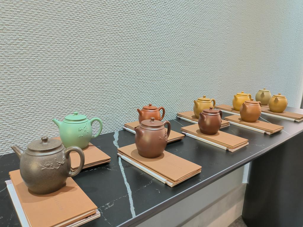 這是江蘇宜興一家工作室展示的部分茶壺作品(5月22日攝)。新華社記者 何磊靜 攝