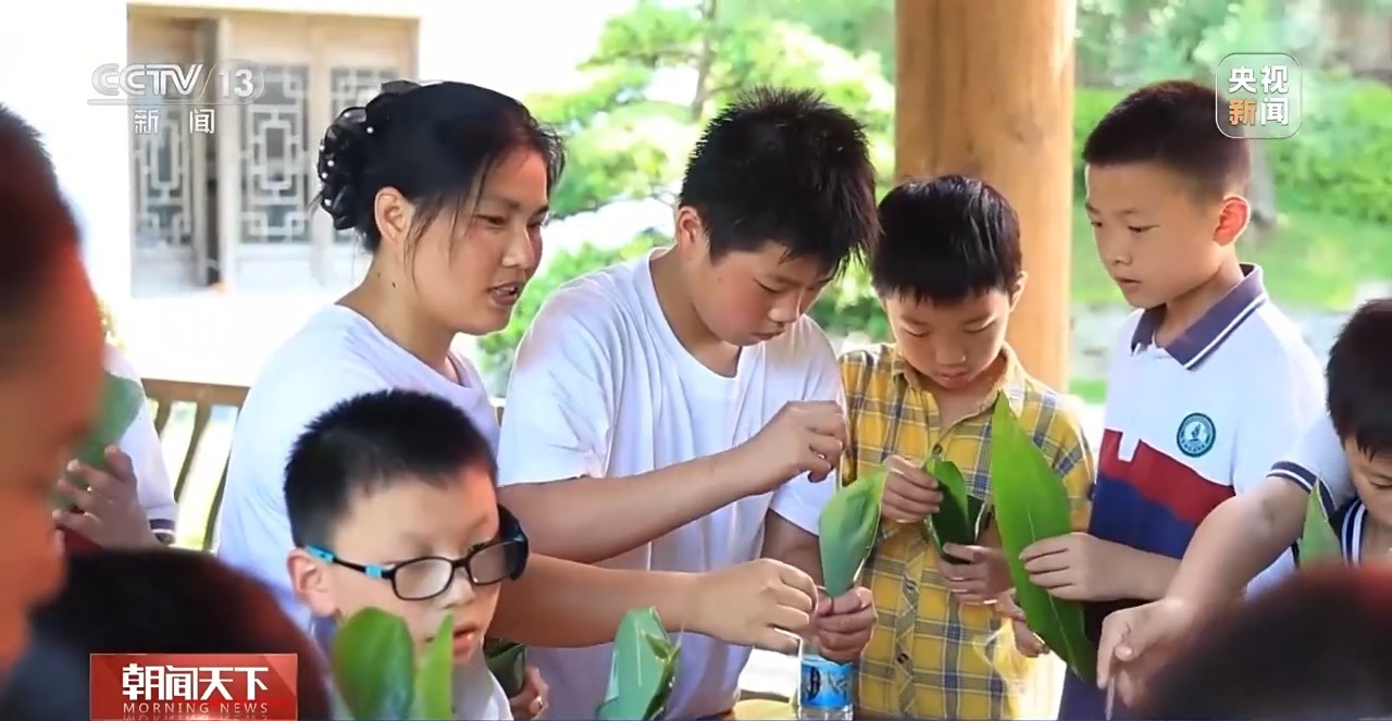 游客 周子菱:學會了自己動手包粽子,還學到了很多關(guān)于粽子的知識,知道粽葉要提前煮熟才能變軟,繩子要交叉綁,粽子才不會散。