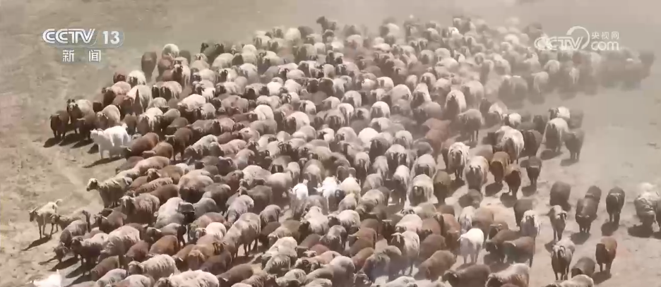 在新疆阿勒泰福??h的沙爾布拉克草原,當(dāng)?shù)啬撩翊┲恋奶厣?,帶著家?dāng),趕著牛羊,正在進(jìn)行轉(zhuǎn)場(chǎng)。今年有45萬(wàn)頭的牛羊經(jīng)過(guò)沙爾布拉克草原千年牧道,轉(zhuǎn)場(chǎng)到水草豐美的夏牧場(chǎng)。