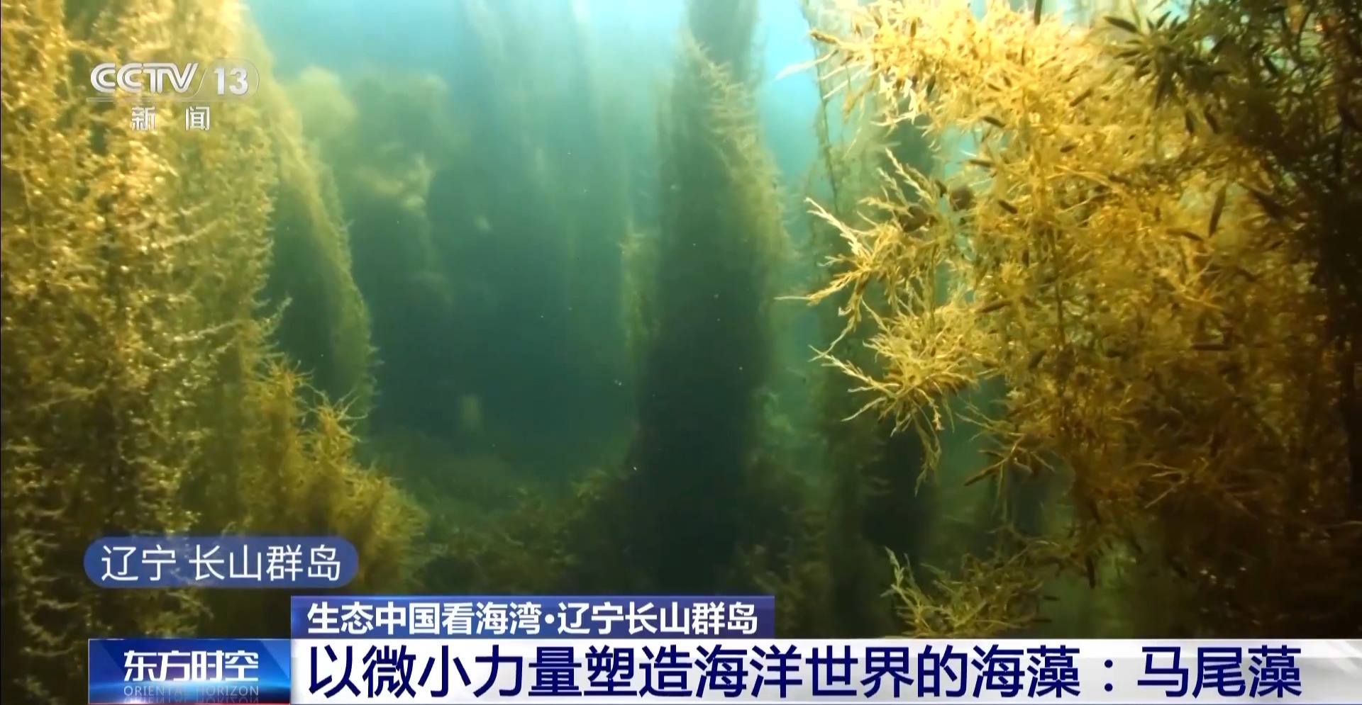 在遼寧長(zhǎng)山群島有一種叫馬尾藻的海洋藻類,它們一束束地纏繞在一起,最長(zhǎng)的可達(dá)十幾米。我國(guó)是馬尾藻主要產(chǎn)地之一,藻類群落不僅是眾多海洋生物的棲息地,還在全球碳循環(huán)、海洋生態(tài)平衡中扮演著重要角色。在海水中,它的顏色是深黃綠色。