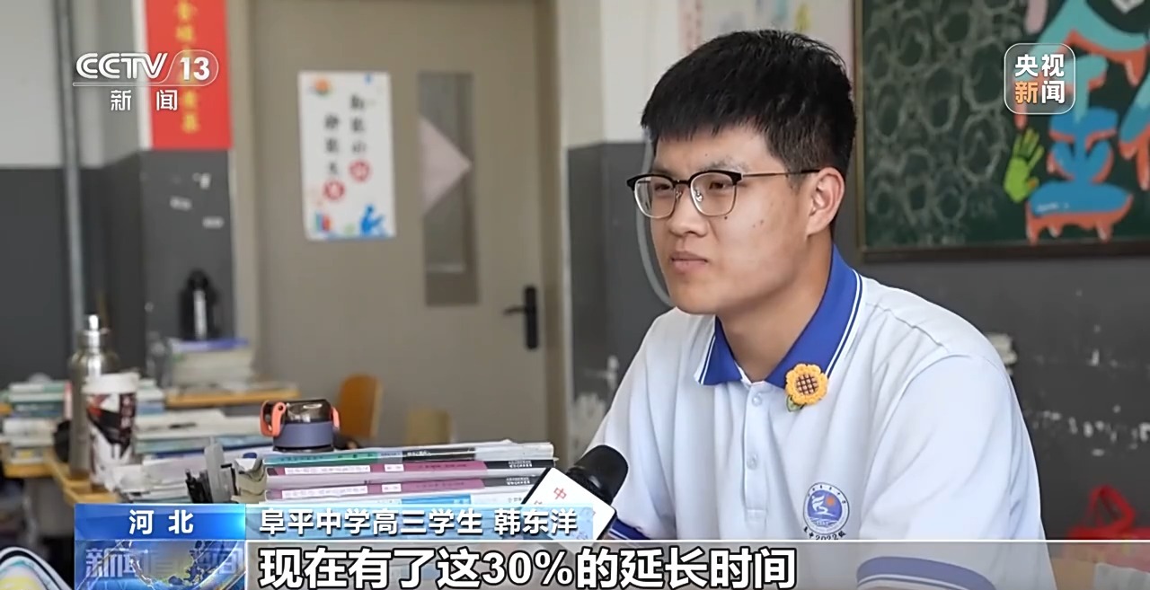河北省今年為360名殘疾考生提供了包括延長(zhǎng)考試時(shí)間、提供特殊試卷、配備引導(dǎo)員等必要支持和合理便利,確保每一位殘疾考生都能平等、自信地參加考試??忌n東洋,因右手殘疾,用左手書(shū)寫(xiě),速度較常人會(huì)慢三分之一。今年高考,經(jīng)申請(qǐng)?jiān)u估,他每科的考試時(shí)間可以延長(zhǎng)30%。這份寶貴的“時(shí)間禮包”,讓他心里踏實(shí)了不少。