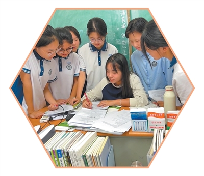 北京師范大學(xué)“優(yōu)師計(jì)劃”師范生張然(中)在實(shí)習(xí)時(shí)為學(xué)生講解輔導(dǎo)。 北京師范大學(xué)供圖