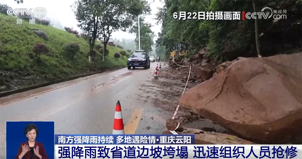 從本月18日開(kāi)始,重慶云陽(yáng)縣出現(xiàn)持續(xù)強(qiáng)降雨。22日上午,云陽(yáng)縣境內(nèi)省道的一處路段發(fā)生邊坡垮塌,導(dǎo)致道路受阻,當(dāng)?shù)囟嗖块T(mén)迅速組織人員前往現(xiàn)場(chǎng)處置。