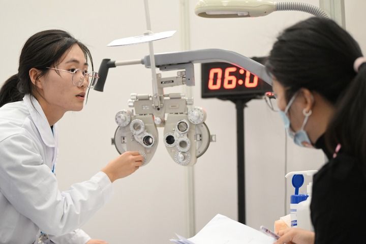 醫(yī)學(xué)生在天津醫(yī)科大學(xué)參加第二屆全國(guó)眼視光醫(yī)學(xué)專業(yè)本科生臨床技能大賽。記者 李然 攝