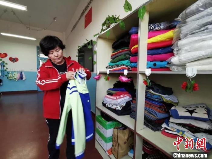 吾吉整理捐贈(zèng)的衣物。 張曉敏 攝