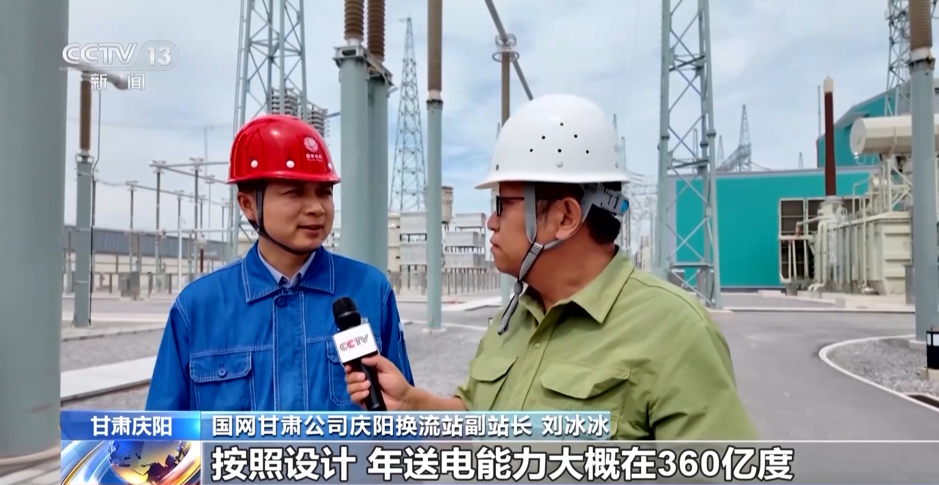 國網(wǎng)甘肅公司慶陽換流站副站長 劉冰冰:按照設(shè)計(jì),年送電能力大概在360億度,可以滿足1000萬戶家庭一年的生活用電,清潔能源占比大概在50%以上。