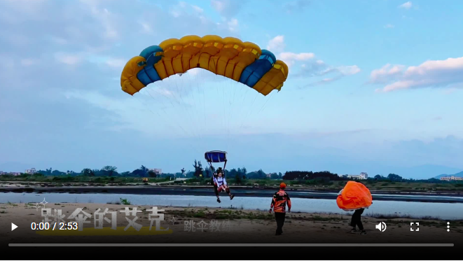 艾克萊姆出生在大美新疆博樂市,是一名職業(yè)跳傘員,也是海南鶯歌海跳傘基地的一名跳傘教練。艾克萊姆喜歡在藍(lán)天白云間自由穿梭的感覺,三年間累計(jì)完成了1000多次的跳傘。艾克萊姆說:“跳傘是一種與天空對(duì)話的方式,是人類對(duì)自由勇敢的追求。在高空中,風(fēng)在耳邊呼嘯,那種感覺無法用言語來形容。”