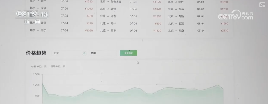目前,昆明、烏魯木齊、西安等長線目的地的暑期機(jī)票價格已開始小幅上漲。記者查詢發(fā)現(xiàn),以北京—昆明機(jī)票為例,7月上旬價格在千元左右,7月中旬開始至8月中旬,價格小幅上漲,均價在1200元到1500元之間。