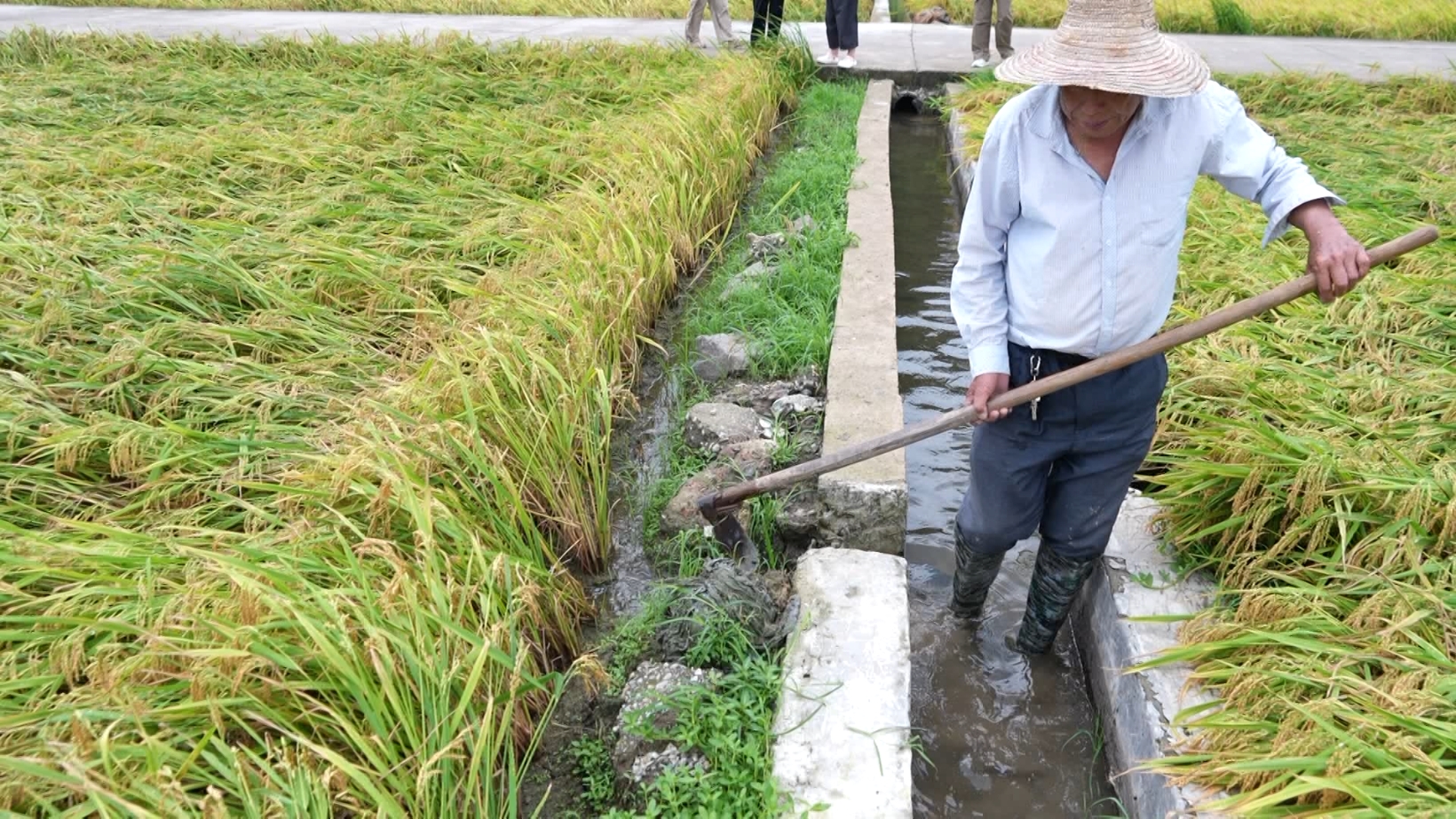 農(nóng)技專家楊煥清來(lái)到現(xiàn)場(chǎng)指導(dǎo)農(nóng)戶搶收,“它倒平后很容易會(huì)發(fā)芽,稻谷發(fā)芽以后就沒(méi)有價(jià)值了?,F(xiàn)在主要就是開(kāi)溝排水,一有晴天馬上搶收。”