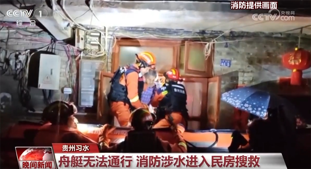 8日晚到9日清晨,貴州遵義習(xí)水縣遭遇強降雨襲擊,導(dǎo)致縣城多處低洼地帶積水嚴(yán)重,道路被淹、房屋進水,多名群眾被困。當(dāng)?shù)叵啦块T展開救援,但因部分地區(qū)通道狹窄,舟艇無法通行,消防人員將繩索系在身上,涉水進入民房展開搜救。