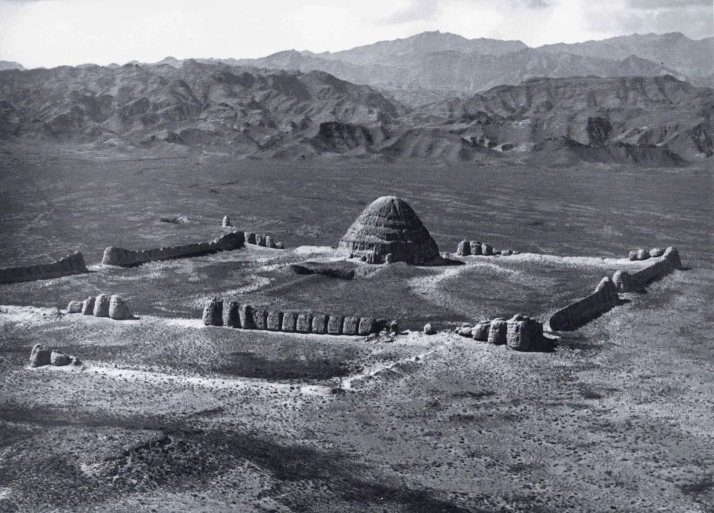 這是20世紀(jì)30年代,德國飛行員卡斯特飛越寧夏賀蘭山時(shí)拍攝的西夏陵3號(hào)陵(資料照片)。新華社發(fā)