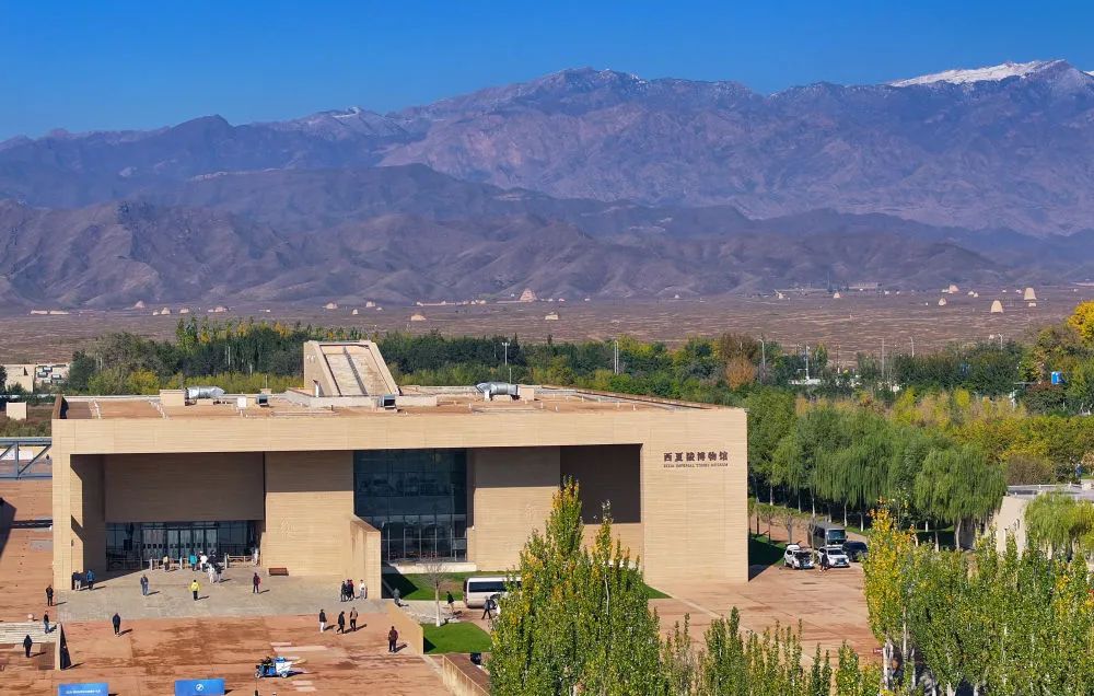 平曠的山前戈壁上,9座陵塔有序分布,以層巒疊嶂的賀蘭山為背景,共同組成天人和諧、蒼茫一體的西夏陵區(qū)。