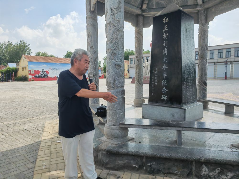 “1943年,日軍突襲劉崗村,嚴(yán)刑逼迫村民說(shuō)出八路軍的秘密。眼看村民一個(gè)個(gè)被殺,冀魯豫邊區(qū)八路軍戰(zhàn)士秦興體站了出來(lái),向侵略者高聲反抗,義無(wú)反顧獻(xiàn)出了生命……”在菏澤市曹縣韓集鎮(zhèn)劉崗村,74歲的義務(wù)講解員劉全義站在劉崗大水牢紀(jì)念碑前,動(dòng)情講述著“紅三村”的抗日故事。