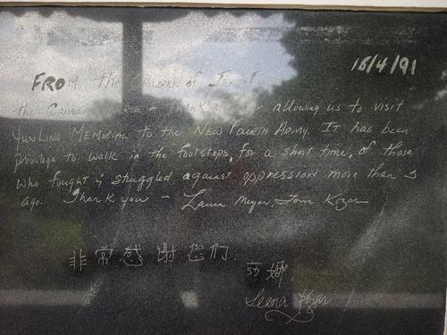 這是瓊·尤恩的外孫女莎娜在1991年回訪位于安徽省宣城市涇縣云嶺鎮(zhèn)的新四軍軍部舊址時(shí)留下的感言,已被鐫刻在新四軍軍部(司令部)舊址內(nèi)。感言中寫道:“感謝讓我們有機(jī)會(huì)參觀云嶺新四軍紀(jì)念館。能短暫追隨那些多年前為反抗壓迫而戰(zhàn)斗的英雄足跡,我們深感榮幸。謝謝?!?新華社記者 郭晨 攝