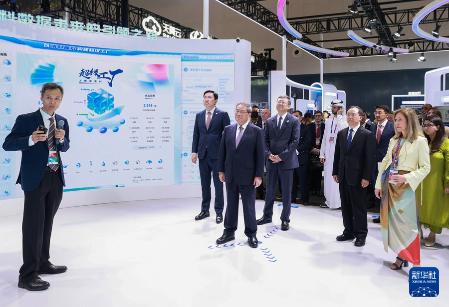 開幕式后,李強同與會外方嘉賓、國際組織代表共同巡館,并與有關(guān)科研機構(gòu)和企業(yè)負責人互動交流。