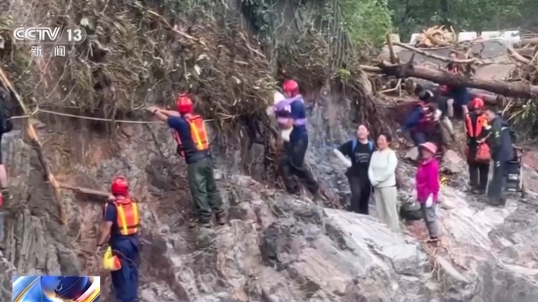 渡過(guò)斷橋還有斷路,這段路需要攀崖壁而行,隊(duì)員們拉起繩索,有自主行動(dòng)能力的被困群眾,緊抓繩索,小心沿懸崖邊緣艱難通行;對(duì)于行動(dòng)不便的老人、兒童和傷員,救援人員將他們一個(gè)個(gè)背負(fù)過(guò)險(xiǎn)段。