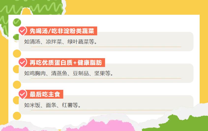 你知道嗎?吃飯時(shí)先吃什么、后吃什么,其實(shí)對(duì)健康影響不小!合理的飲食順序,能幫助我們更好地消化吸收、穩(wěn)定血糖,還能控制體重。