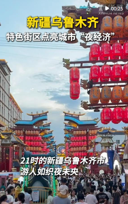 在烏魯木齊市的天山明月城特色街區(qū),這里匯集了餐飲、休閑娛樂、歌舞演藝等業(yè)態(tài),每天都有各類演出活動,在豐富市民游客文化活動的同時,激發(fā)消費活力,助力“夜經(jīng)濟”發(fā)展。