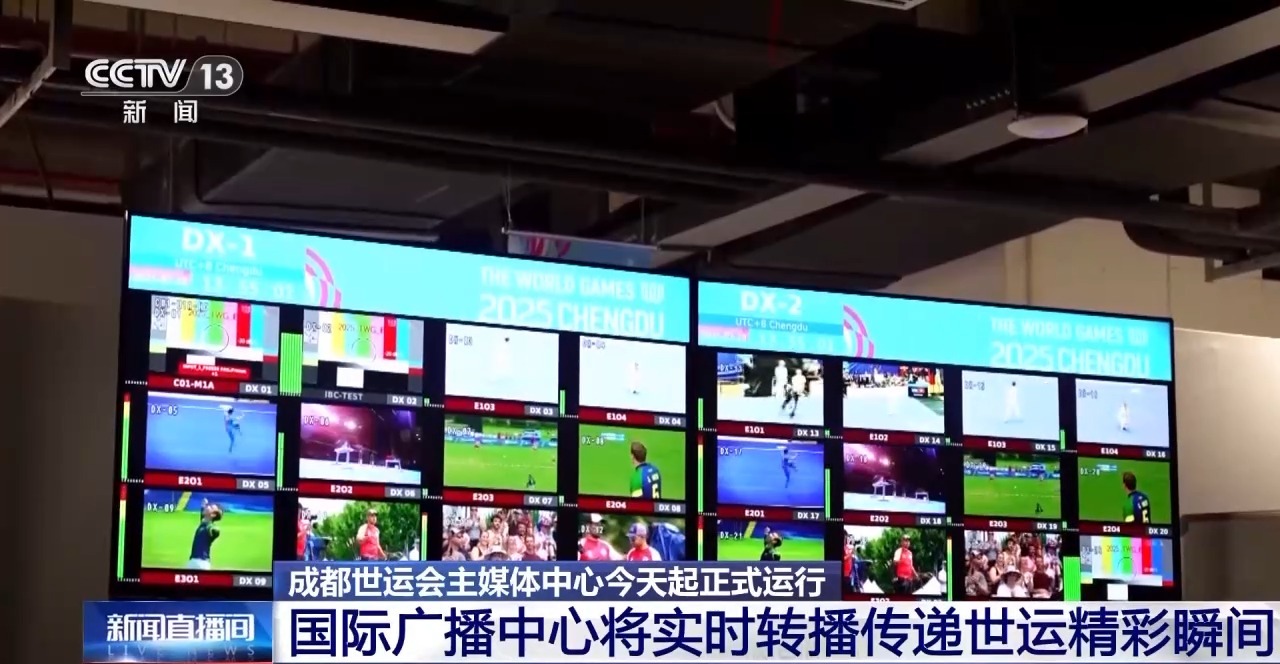主媒體中心還有一個(gè)重要組成部分就是旁邊的國(guó)際廣播中心,也在今天正式開(kāi)啟運(yùn)行了,這里是賽事轉(zhuǎn)播的“神經(jīng)中樞”,匯聚了開(kāi)閉幕式、各個(gè)競(jìng)賽項(xiàng)目以及多個(gè)風(fēng)景點(diǎn)的國(guó)際公用信號(hào),將通過(guò)主轉(zhuǎn)播機(jī)構(gòu)和持權(quán)轉(zhuǎn)播商,把世運(yùn)精彩瞬間實(shí)時(shí)傳遞到世界每一個(gè)角落。