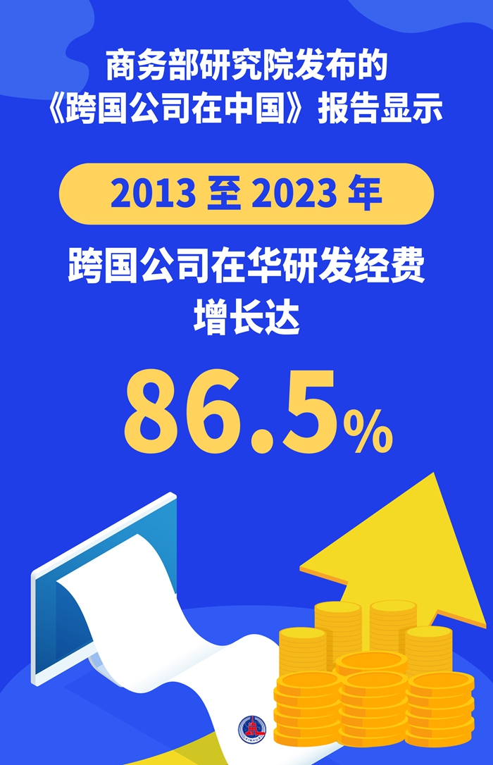 商務部研究院發(fā)布的《跨國公司在中國》報告顯示,2013至2023年,跨國公司在華研發(fā)經費增長達86.5%??鐕九c中國的投資合作已由“市場導向型”“成本導向型”延伸至“創(chuàng)新驅動型”。
