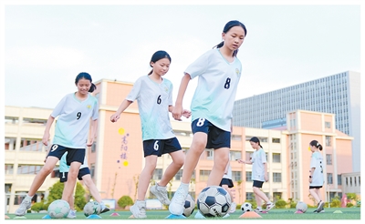 江西宜春上高縣錦陽(yáng)小學(xué)托管班上,學(xué)生在踢足球。