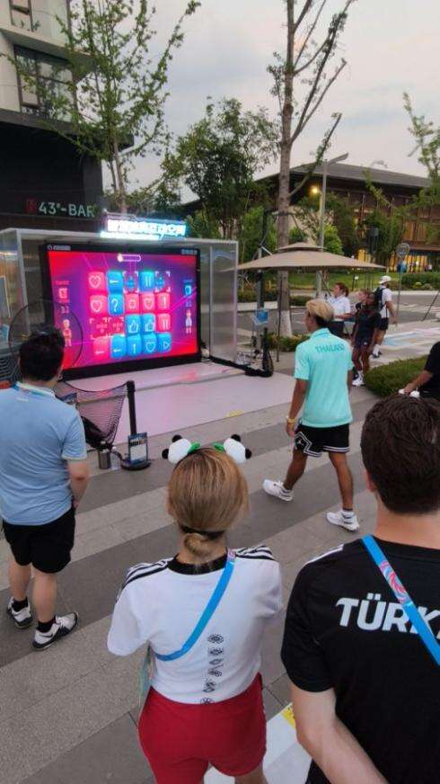 AI智能互動(dòng)運(yùn)動(dòng)終端設(shè)備支持壁球、網(wǎng)球、足球、籃球、排球等多種球類運(yùn)動(dòng)互動(dòng)。成都世運(yùn)會(huì)執(zhí)委會(huì)供圖