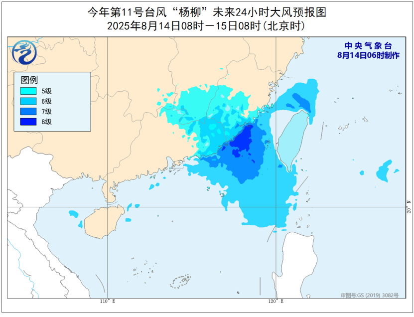 中央氣象臺8月14日06時發(fā)布臺風藍色預(yù)警:
