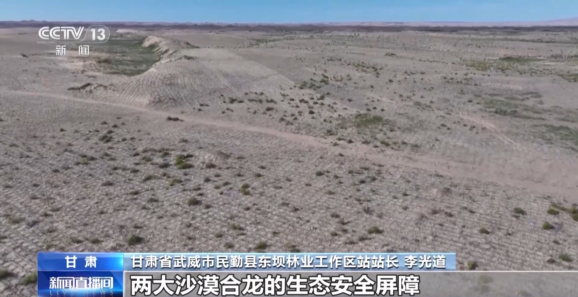 甘肅省武威市民勤縣東壩林業(yè)工作區(qū)站站長(zhǎng) 李光道:我們將持續(xù)做好補(bǔ)水、病蟲(chóng)害防治、防火、禁牧等撫育管護(hù)工作,進(jìn)一步筑牢阻隔兩大沙漠合龍的生態(tài)安全屏障。