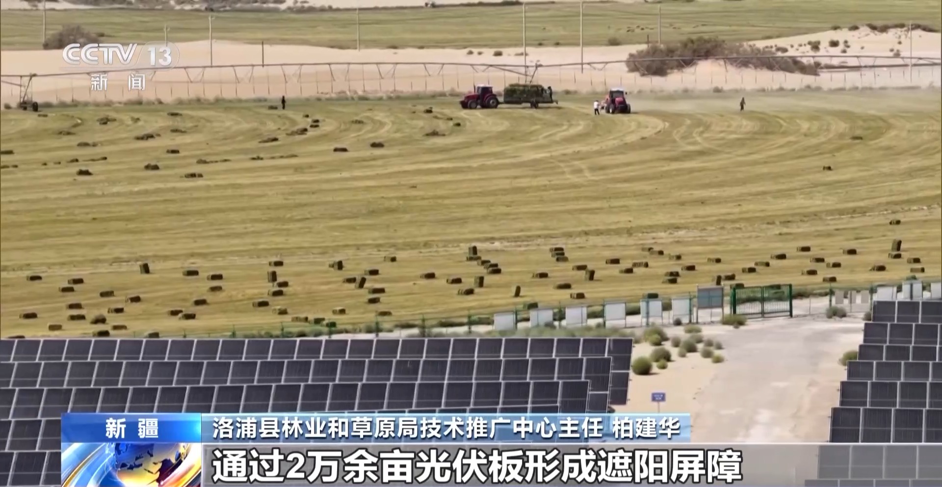 洛浦縣林業(yè)和草原局技術(shù)推廣中心主任 柏建華:光伏板不僅能發(fā)電,還改變了沙漠生態(tài)。通過(guò)2萬(wàn)余畝光伏板形成遮陽(yáng)屏障,使地表溫度下降3~5℃,降低了沙漠水汽蒸發(fā),土壤含水率提升20%左右,作物存活率顯著提高。